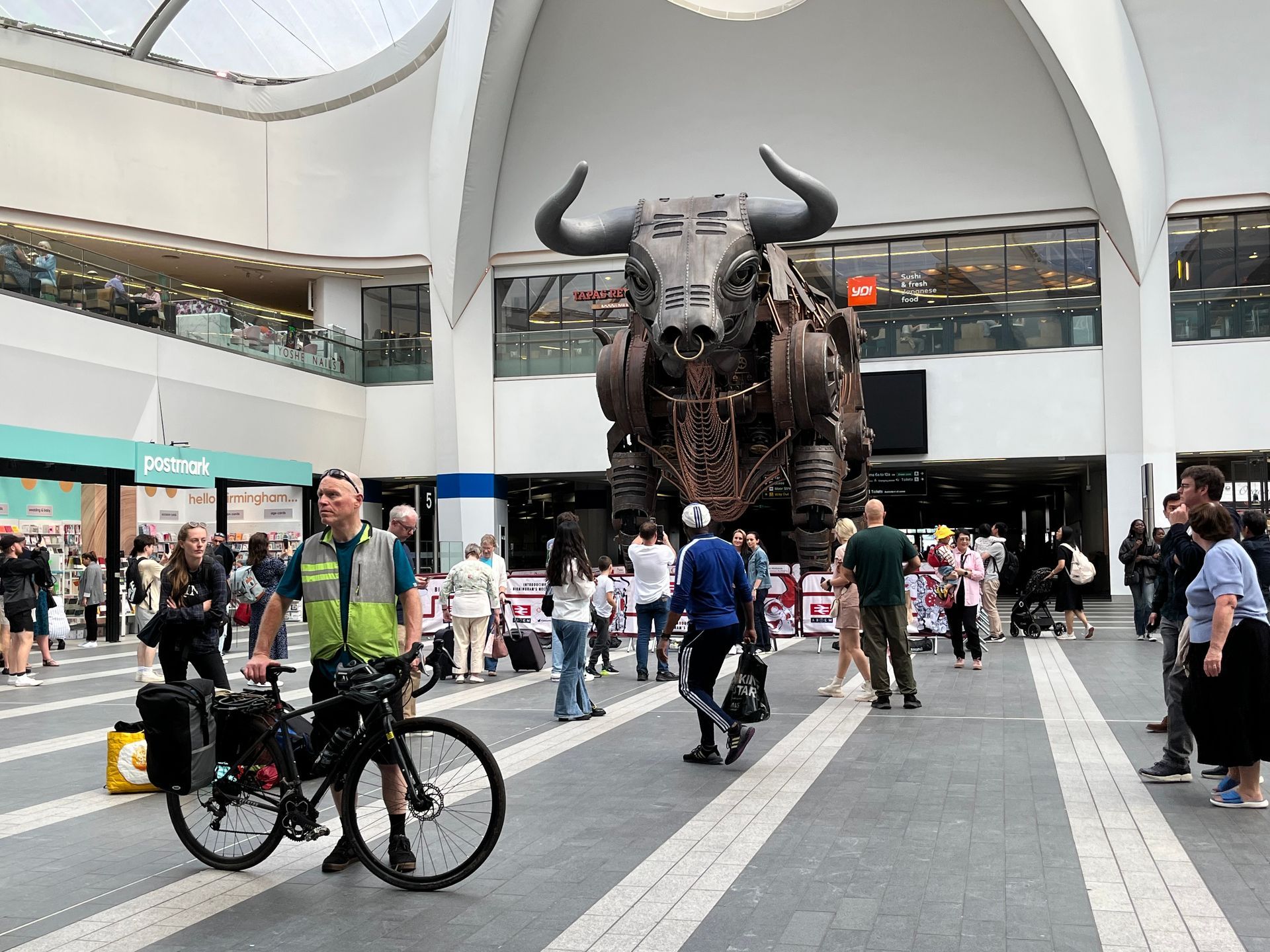 Izzy, the mechanical bull from the 2022 Commonwealth Games has been given a new home on the concourse of Birmingham's New Street station.